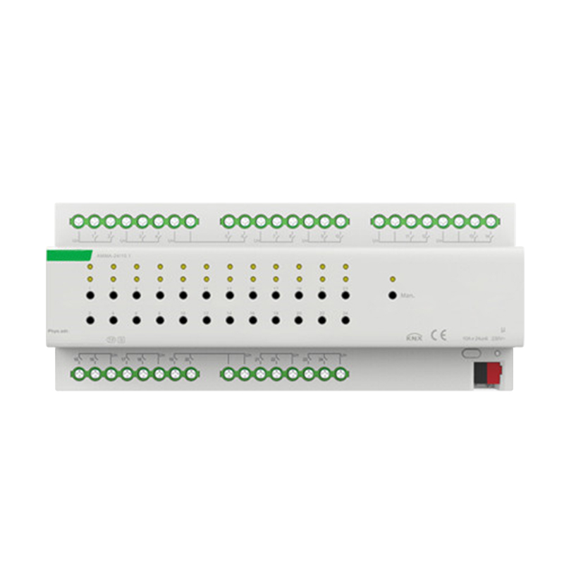 多功能执行器是一个多路输出模块,集成了多种输出功能,有开关输出,窗帘DC/AC输出,风机输出和阀门输出。根据需求可随意配置本模块的功能,比如一部分输出用于控制开关,一部分输出用于控制窗帘,一部分输出用于控制风机等。多功能执行器是模块化安装设备,为了方便安装到配电箱中,根据 EN 60 715 设计,能安装在35毫米的丁导轨上,设备采用螺丝接线柱实现电气连接,总线连接直接通过 EIB 接线端子连接,系统供电除总 线外不需要额外的电源电压。